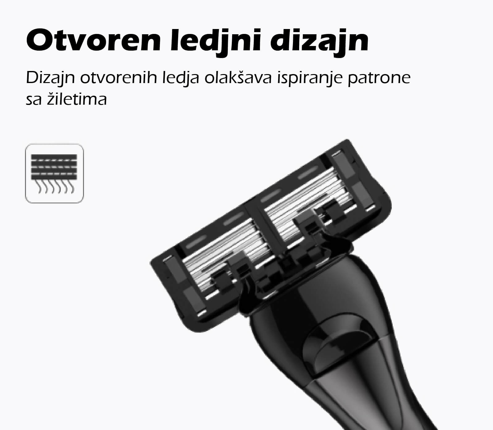 Žileti se u roku od jedne sekunde klikom menjaju na našoj dršci koja omogućava brijaču da se kreće u više pravaca i tako ostvaruje maksimalan kontakt sa manje propuštenih dlačica.