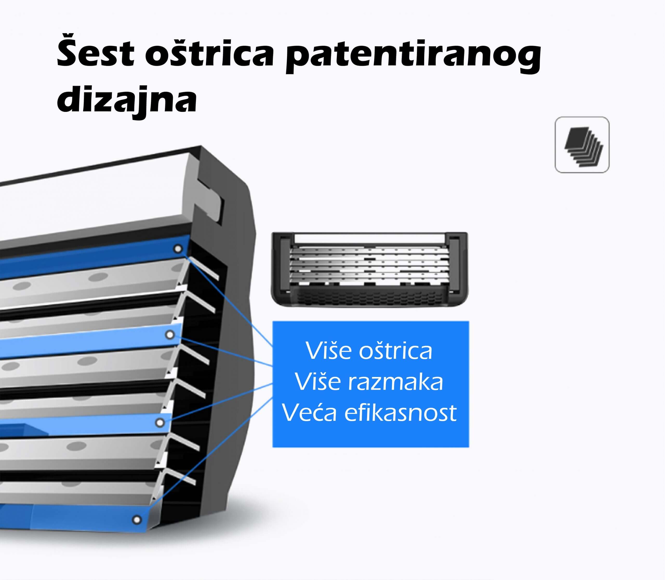 Žileti sa šest oštrica od nerđajućeg švedskog čelika na tvojoj adresi.